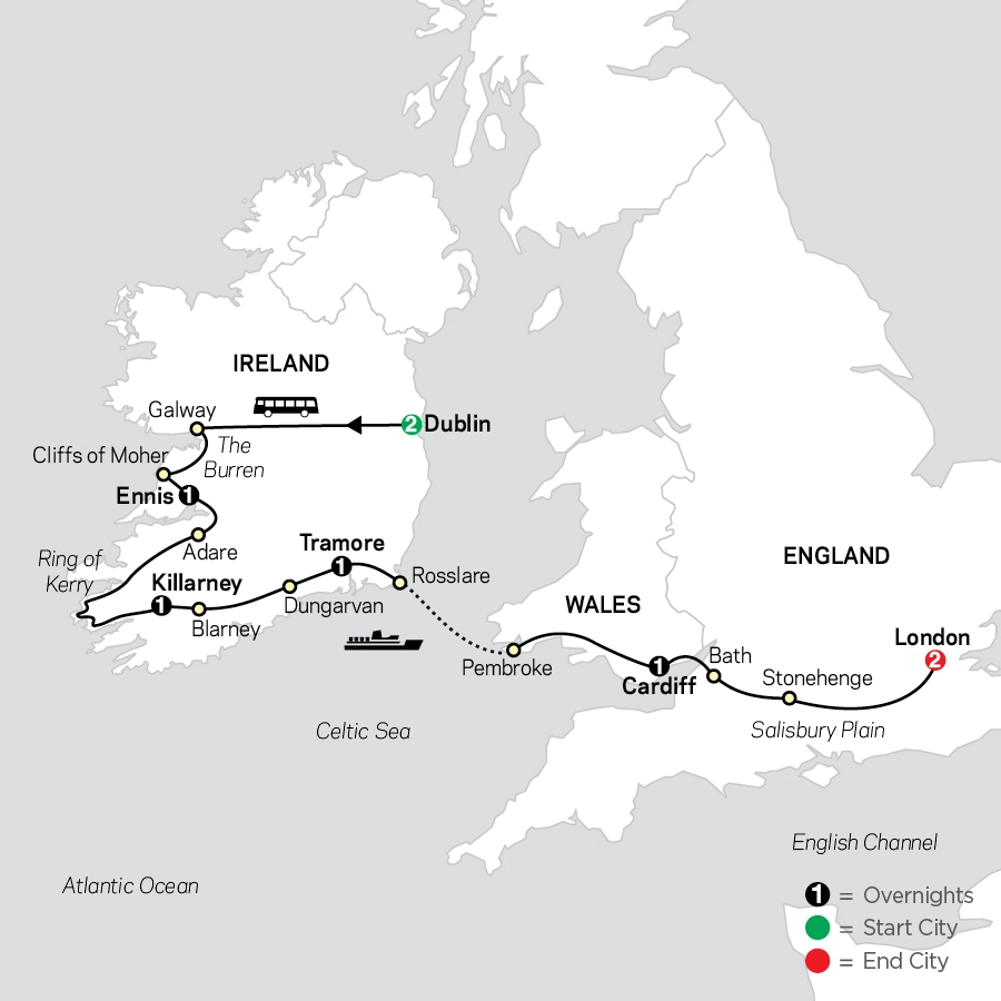 Experience the 9-day Ireland trip with IMAD Travel, where on the seventh day, you'll kick off your morning with a scenic drive over the breathtaking Severn Bridge into England. Take a break in the charming Georgian city of Bath, renowned for its Roman artifacts, before heading to Stonehenge, a marvel of ancient engineering and Europe's most famous prehistoric monument. Delve into the captivating exhibitions at the visitor center and then explore the historic landscape on foot. Upon reaching London around 3:30 pm, why not commemorate the success of your tour with an evening of revelry in the city? Today’s Distance: 174 mi/ 280 km